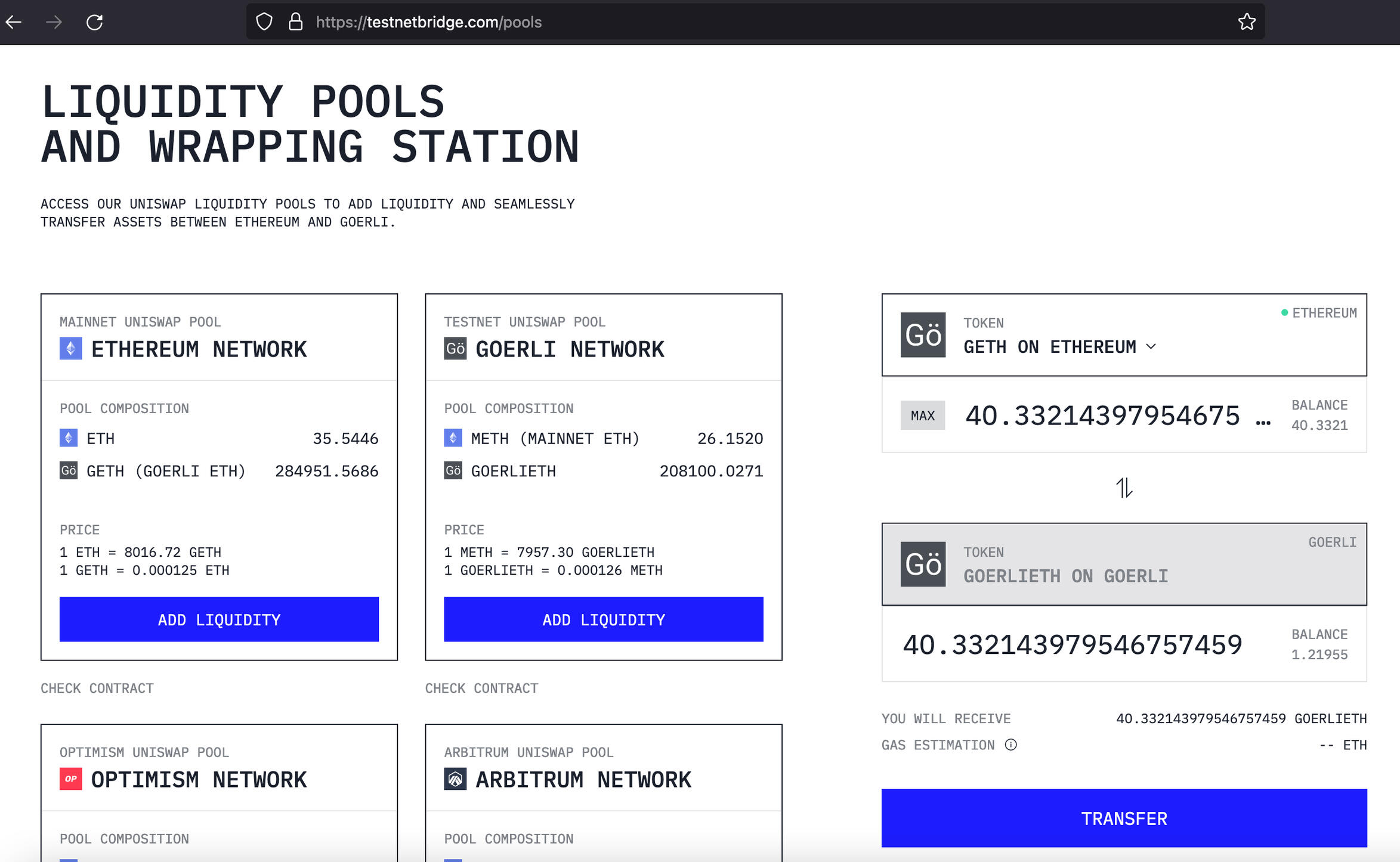 2. Bridge gETH from mainnet to Goerli (link to bridge)