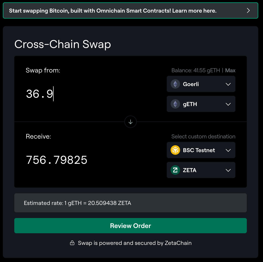 7. Click “Try Swapping!” to open Zeta's swap interface