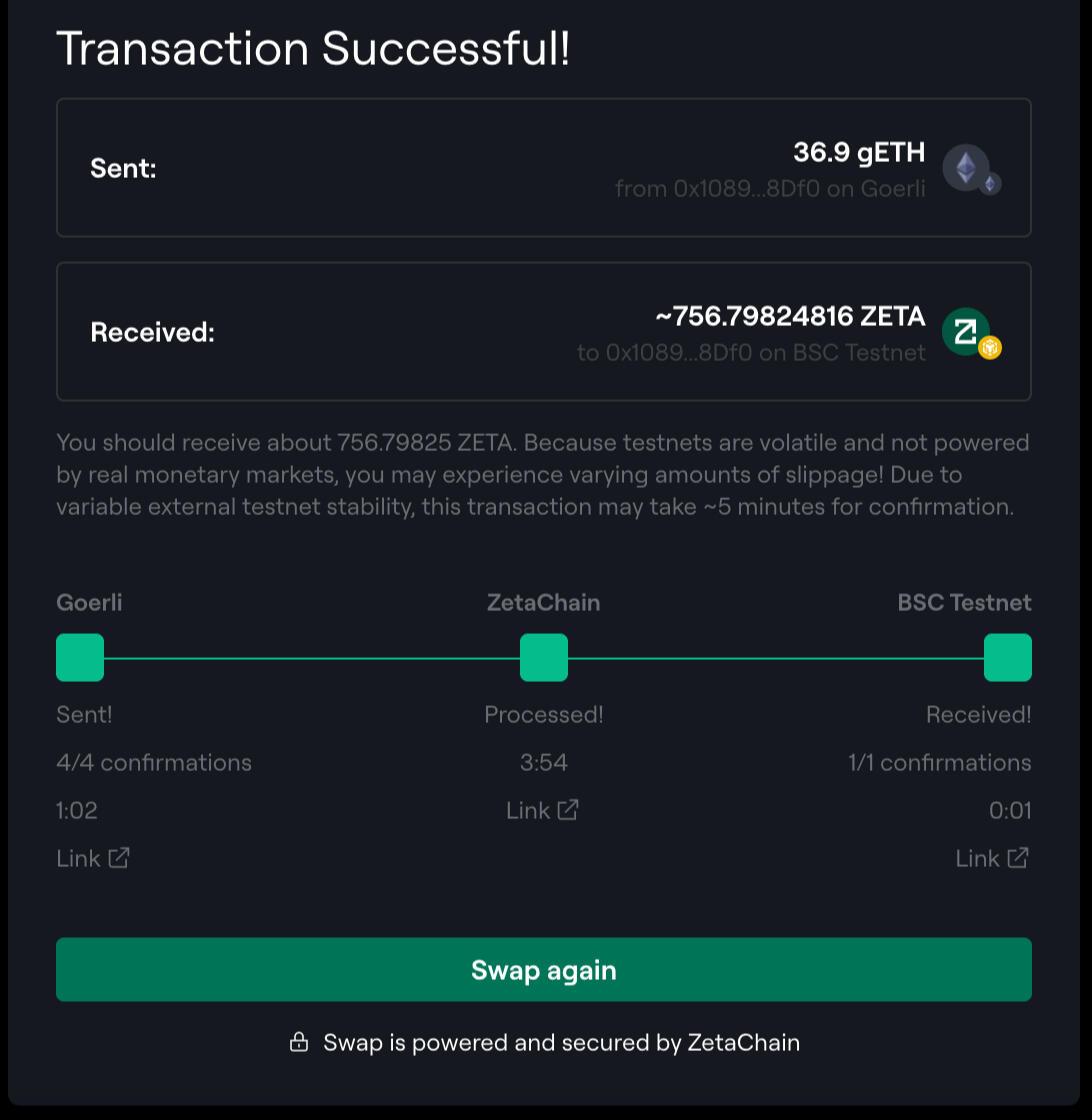 ZetaChain LabsAlso, you will note we are paying to swap to gETH. Why? Because it would take way too long and way too much effort to get gETH via faucets, imo. There are other faucets and chains supported by Zeta, but I'm going to approach this the fast and dirty way. If you have more time, you can chase faucets and play with smaller amounts. I'm opting for slightly larger amounts for farming (ie, 10 gETH, etc.).Tasks for Zeta airdrop: